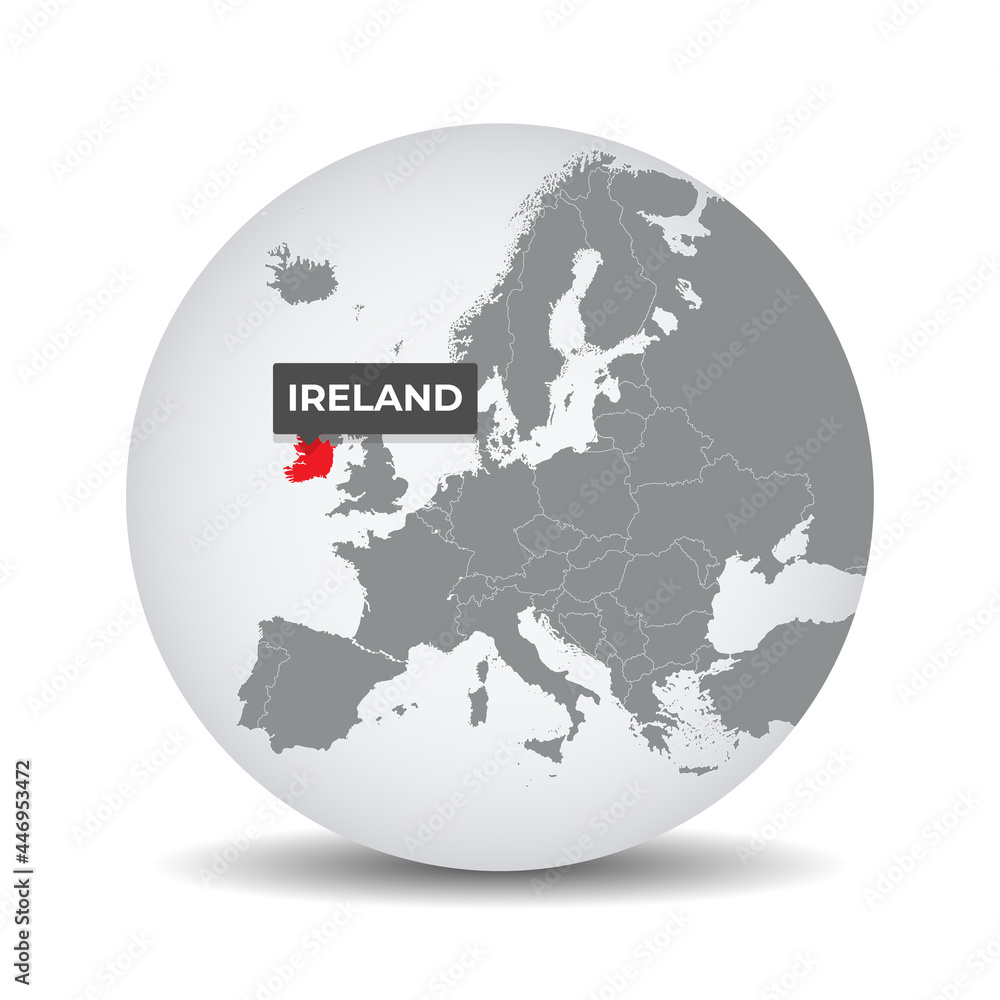 World globe map with the identication of ireland. Map of Ireland